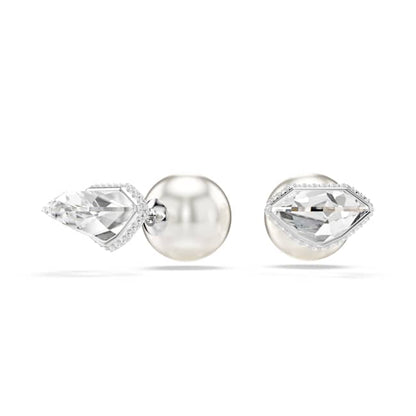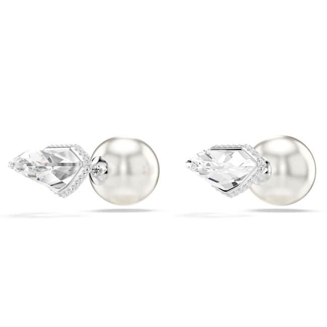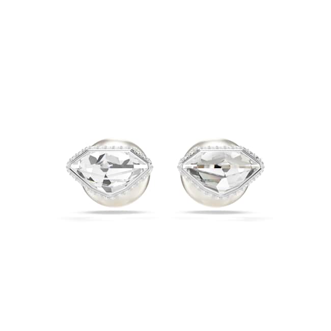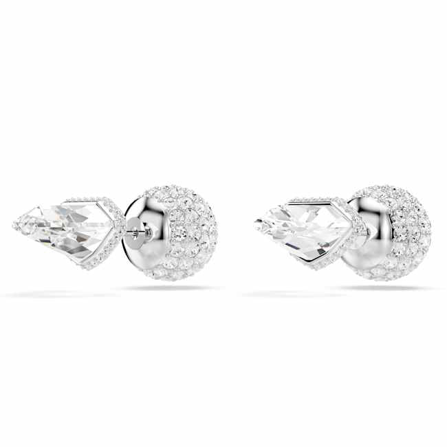 These versatile Lucent studs encourage you to get creative with your styling. Each rhodium plated piece features a faceted clear crystal at the front and two options for the back: a smooth ball closure in white, or a ball adorned with a pavé of round-cut crystals. A unique piece that will inspire your imagination.