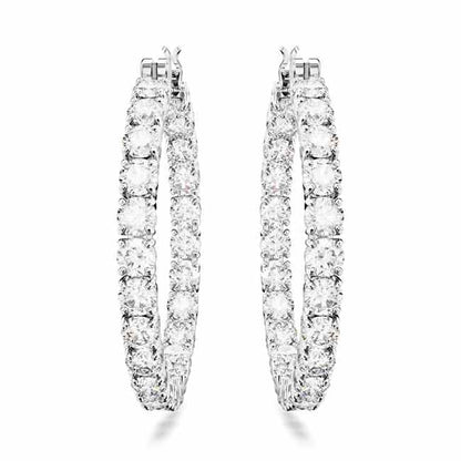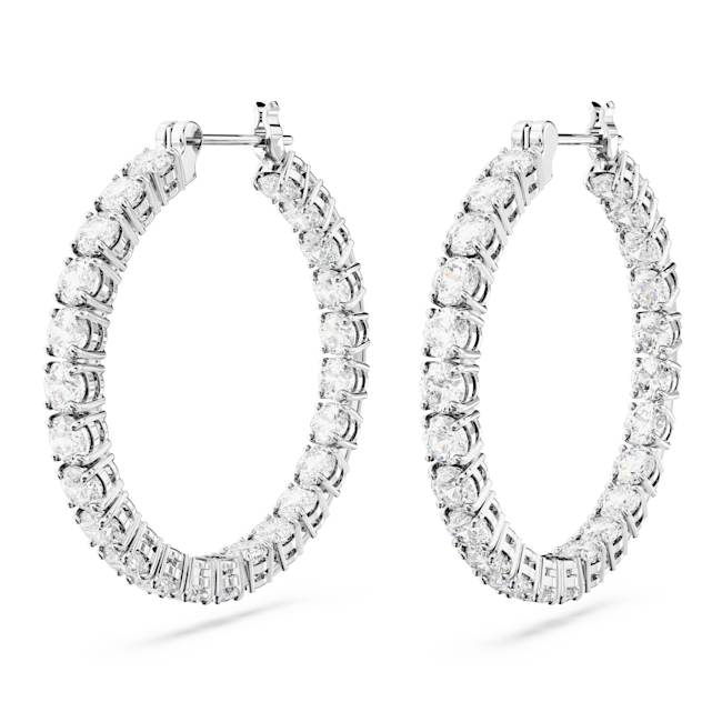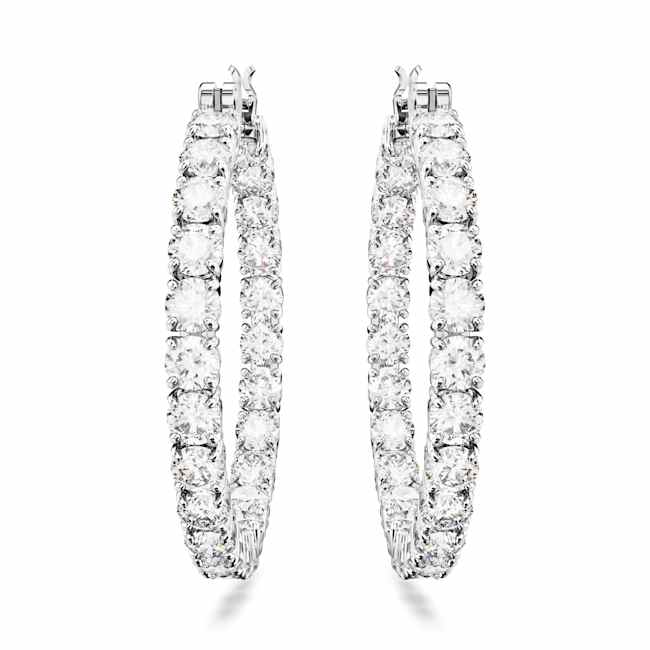 These perfectly formed Matrix hoop earrings are defined by the timeless look of clear round stones and rhodium plated metal. It’s a radiant combination that is essential to any jewellery box. Reach for these hoops to deliver perfect circles of radiance to any outfit.