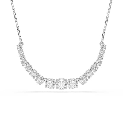 Embrace a pure expression of elegance with this radiant Matrix necklace. The rhodium plated design features a delicate chain, adorned in a gradient of round-cut Swarovski Zirconia, each faceted for light-reflecting wonder. Enhance the look of luxury by pairing this necklace with a set of matching earrings or a bracelet.