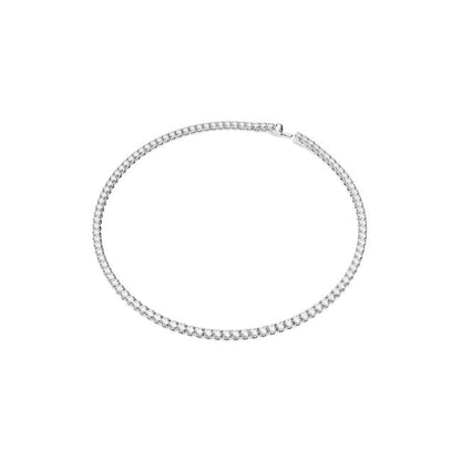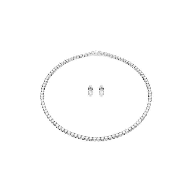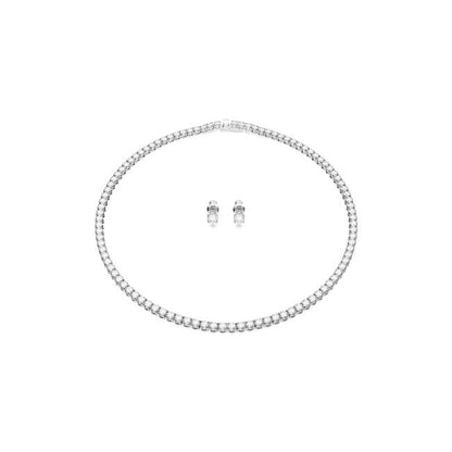 This perfectly matched set ensures that your overall look is expressed in total harmony. It includes an all-round necklace, featuring a string of shimmering clear stones and a refined closure, as well as a pair of delicate stud earrings. For an everyday combination or a simple touch of beauty on a night out, this is an assured choice.