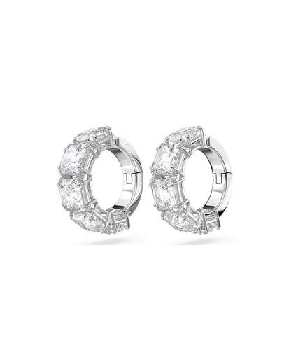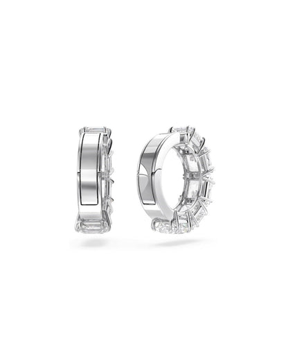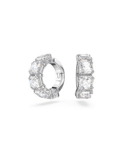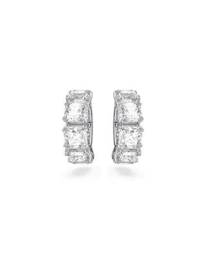 The essential style of our Millenia family is masterfully displayed in these shining clip earrings. A uniform row of clear square-cut stones is set in rhodium plating, igniting a harmonious balance of metal and crystals. It’s a dazzling look that can be enjoyed any time - day or night.