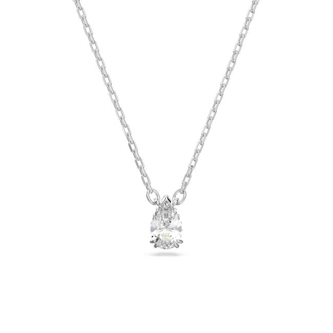 As fundamental to your wardrobe as a classic white tee, this Millenia pendant will never go out of style. Strung on a delicate rhodium-plated chain, it is finished with a clear pear-cut stone. Don't be surprised if you never take it off.