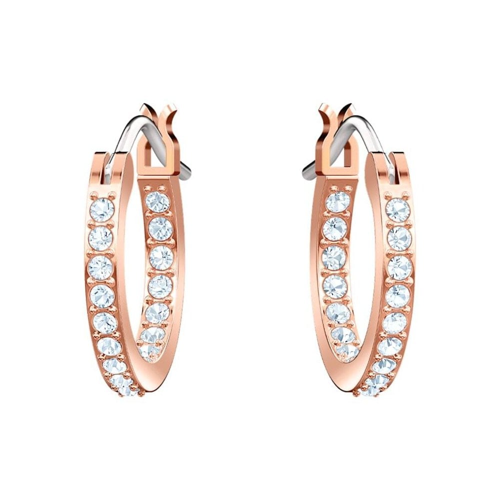 Dial up your fashion credentials with this versatile pair of hoop earrings in rose gold plating. A play on the classic evil eye symbol, they feature the protective talisman embellished in clear, blue, and black pavé. Hanging from classic clear pavé hoops, the eye motifs can be removed if desired. Certain to add a sense of cool and romantic glamour to even the most casual outfit.