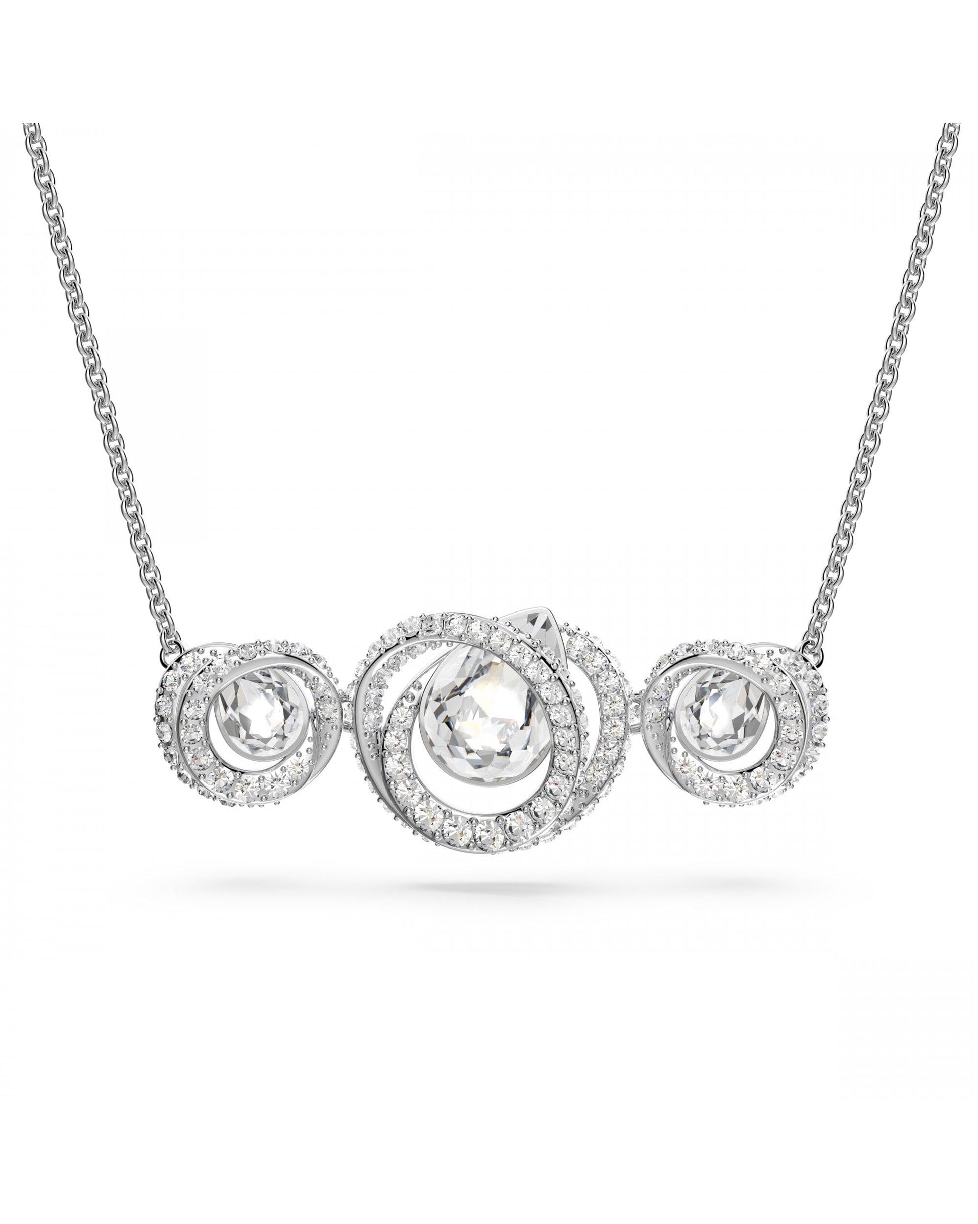 Showcasing Swarovski’s dedication to meticulous craftsmanship, this rhodium-plated necklace is a conversation starter. Inspired by the movement of sea waves, it features three mesmerising clear crystals surrounded by spirals of shimmering pavé.