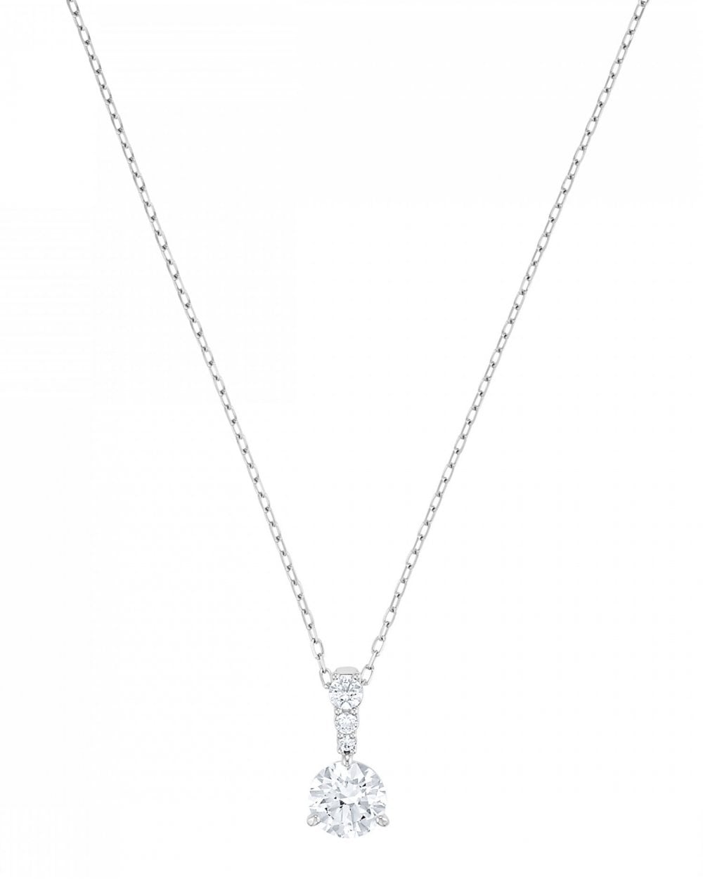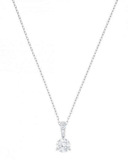 Introducing a stunning new interpretation of our bestselling Solitaire Pendant, one of our most popular designs and a true Swarovski classic. More refined than ever before, this rhodium plated pendant shimmers exquisitely. A go-to piece with just the right amount of sparkle for every occasion, it will enhance any outfit. The pendant comes on a chain.