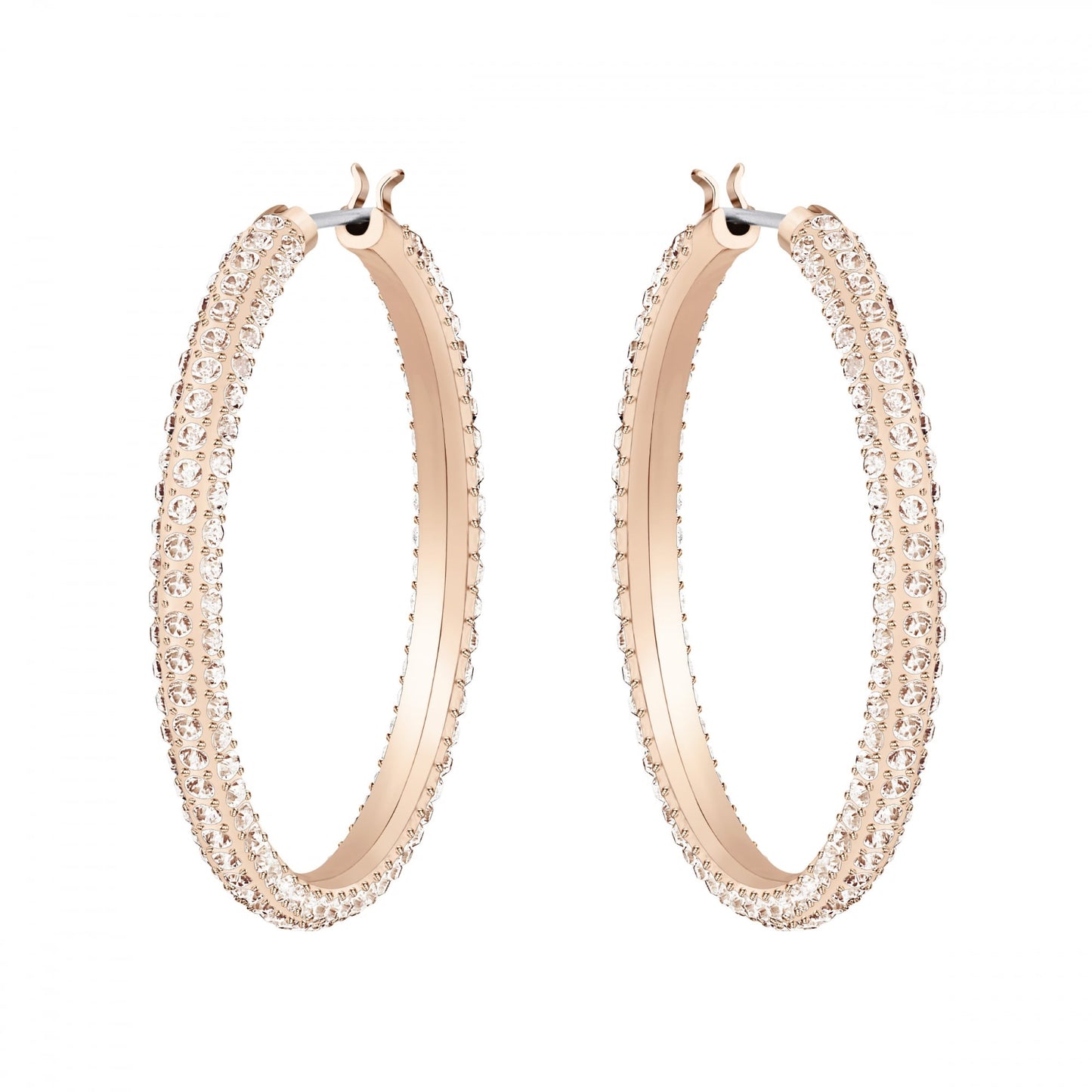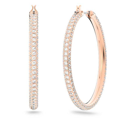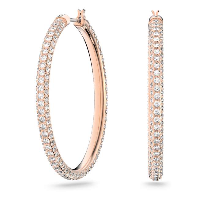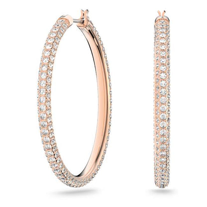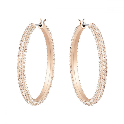 Stone Pierced Hooped Earrings in Silk Crystal and Rose Gold Plate