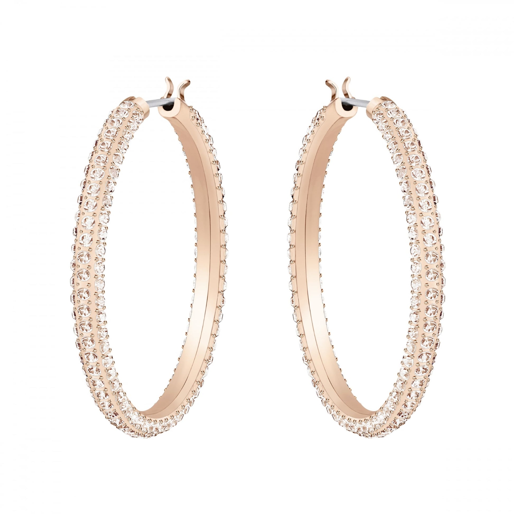 Bring a touch of glamour to an otherwise simple pair of hooped earrings with this gorgous pair from Swarovski. This simple design is easy to wear, but the crystal pave adds that inimitable Swarovski special sparkle. The rose gold colour is pretty and feminine, whilst the hoops themselves are delicately pretty.