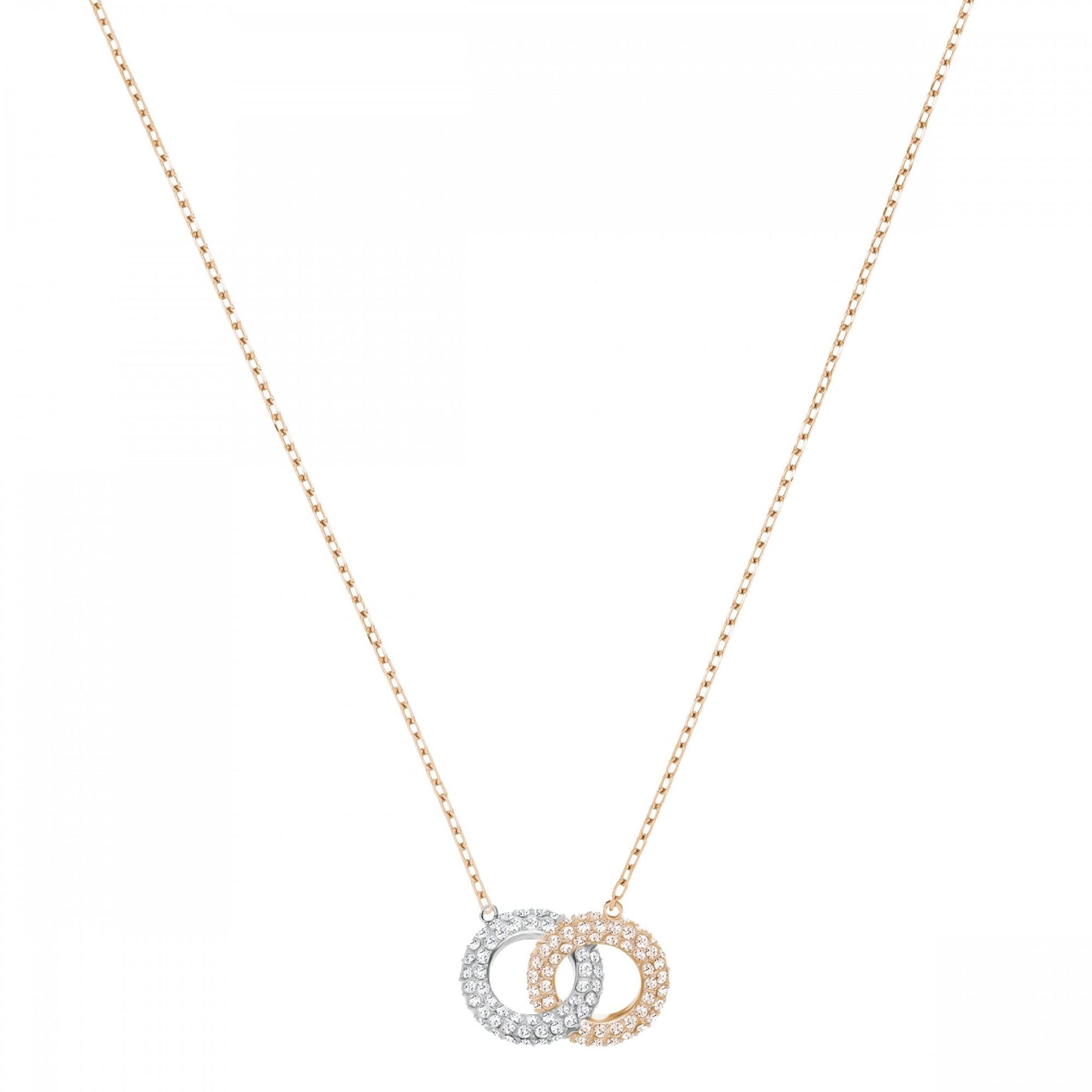 Striking interlocking circular motifs this necklace brings a touch of luxurious finish to any outfit. Crafted in rose gold-plated metal, it shines with pavé crystal. An accessory that will move seamlessly with you from day to night.