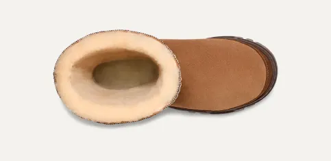 - Rear pull tab made from 100% recycled polyester fibers, UGGbraid detailing, Suede vamp, 17mm Twinface Sheepskin shaft, Leather mudguard, Leather heel counter