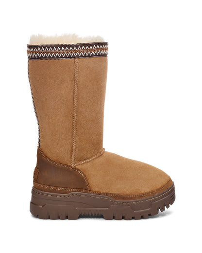 The Classic Tall TrailGazer is an evolution of our Heritage vault design theory, designed to bring unstoppable comfort to the outdoors. The waterproof sheepskin upper highlights our signature UGGbraid, and the interior is fully lined with super soft UGGplush for 360º of cosiness. Made to get you outside, even when the snow is falling, the Classic Tall TrailGazer is weather-rated to -20ºC and is complete with a White Spider Rubber® outsole to deliver enhanced traction.