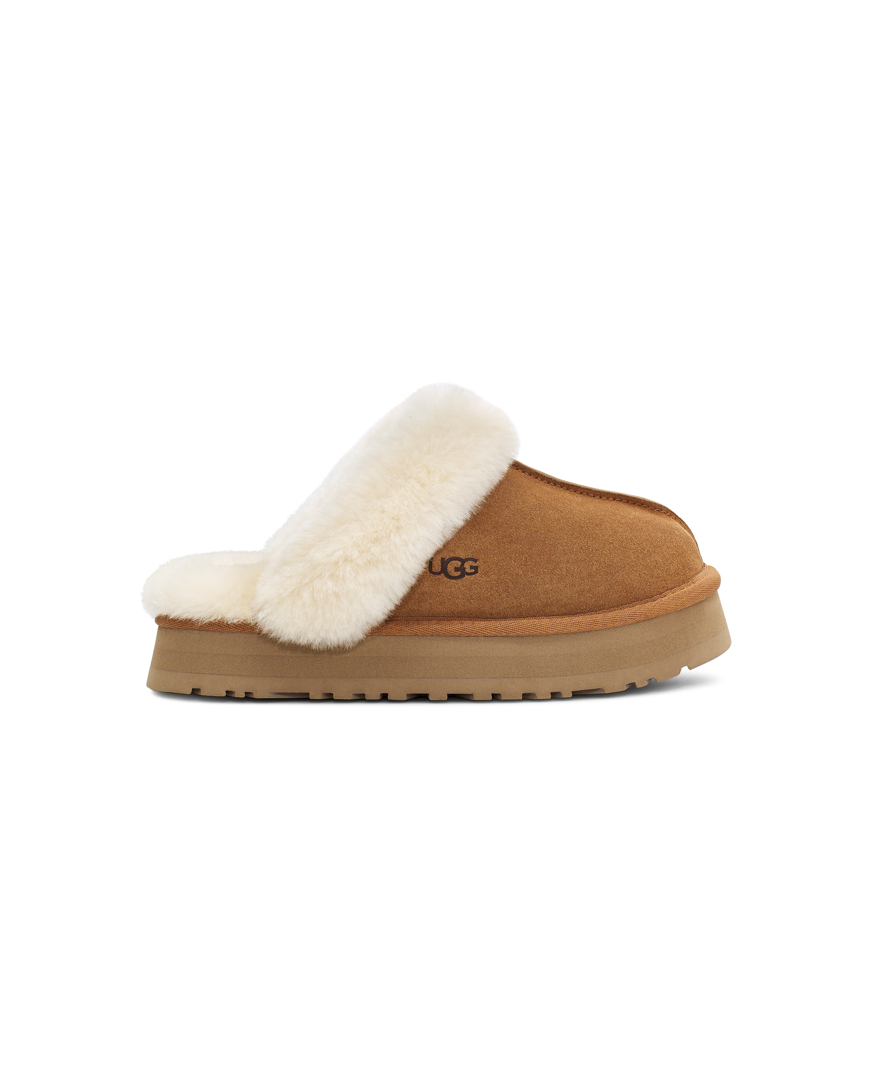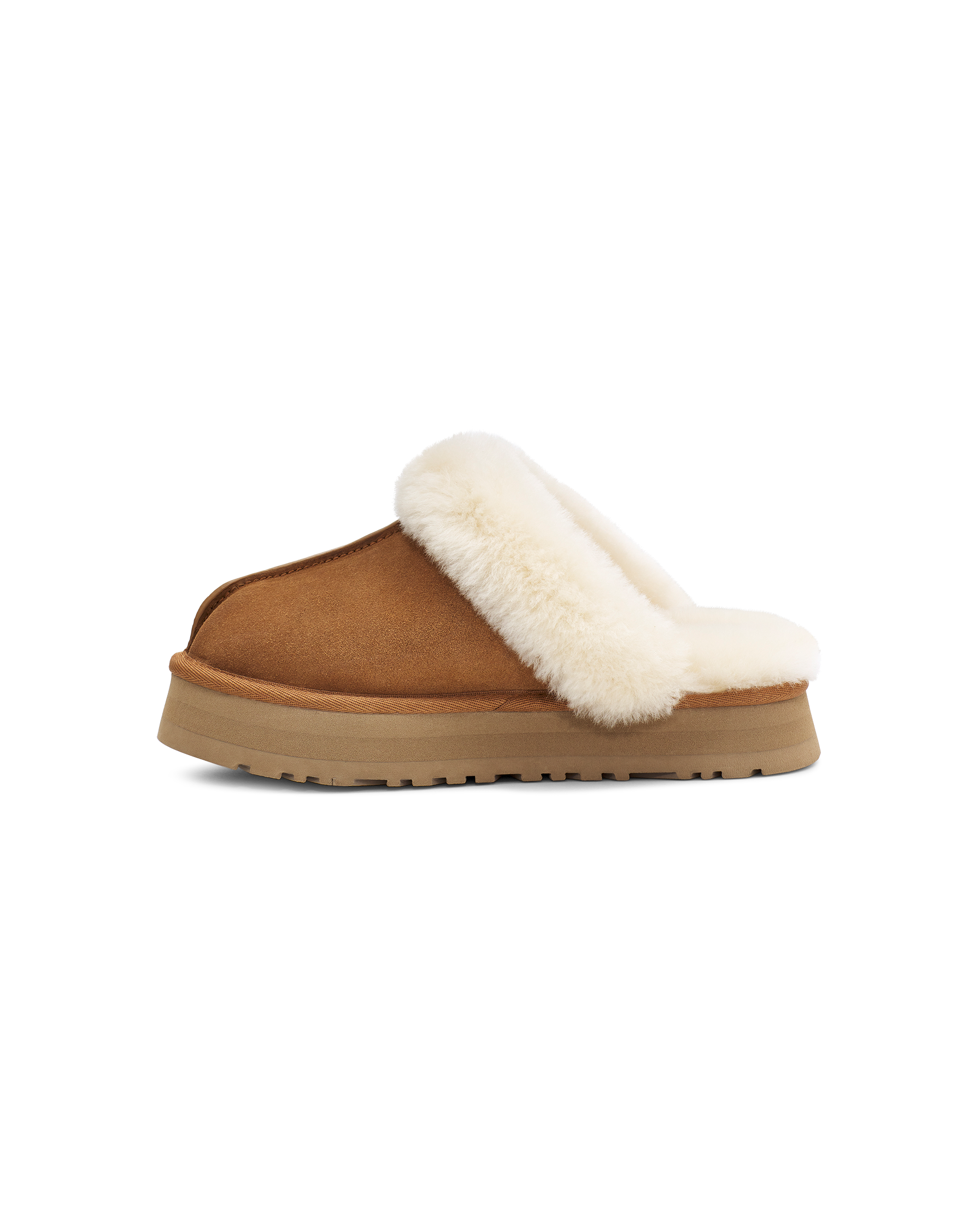 How would you describe yourself? Totally unique? Like to stand out? Want to try both for the first time? Then you are definitely on the right page. The Disquette adds a 1" retro-style platform sole to a familiar slip-on silhouette for outdoor wear, an all-day cushion, and a maximalist look. Crafted from our signature sheepskin and suede, this effortless style adds a playful statement to your life. The outsole of this product is either a sugarcane EVA outsole, which is a responsible compound using sugarcane foam that allows us to reduce dependency on fossil fuels by replacing petroleum-based ethylene, or a Treadlite by UGG™ outsole. This product was made in a factory that supports women in our supply chain with the help of HERproject. This collaborative initiative creates partnerships with brands like ours to empower and educate women in the workplace.