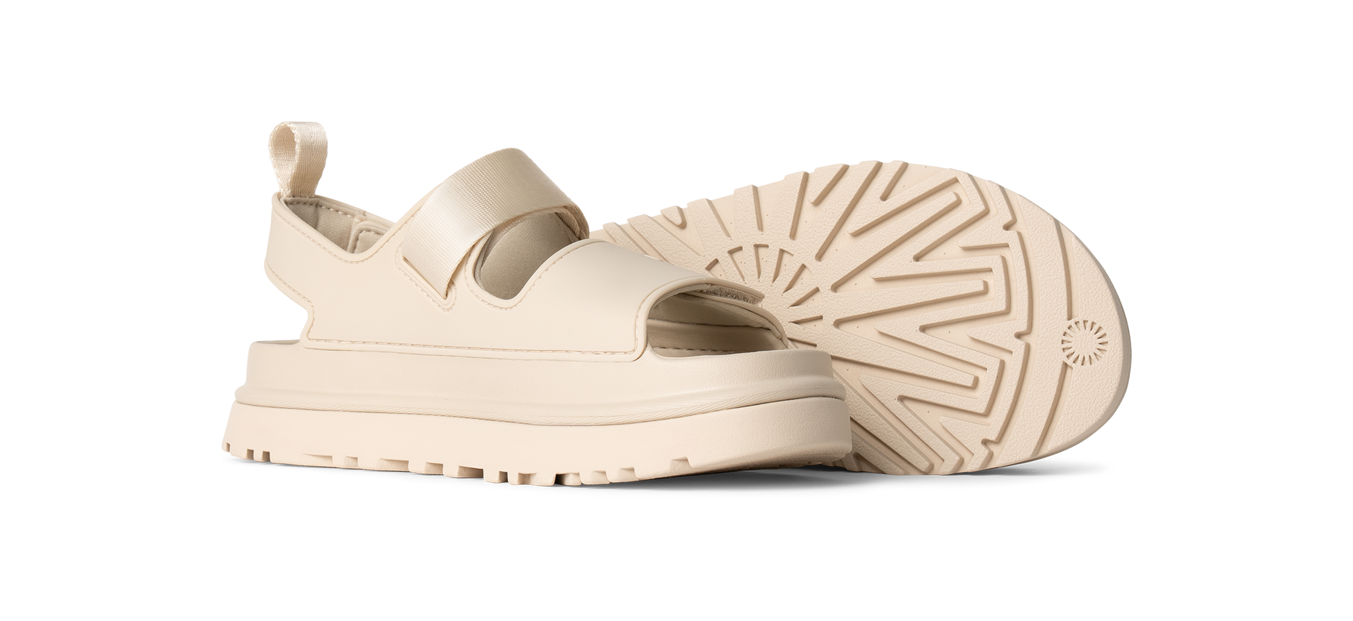 Bask in the GoldenGlow. It's our It-Girl Sandal. Slip right in and go with this super lightweight summer star. You bring the confidence She'll bring the bold. Our GoldenGlow is a fully adjustable sandal. It's made from springy and supportive sugarcane EVA that's ready to wear through rain and shine. Stacked on a platform with a lug sole and complete with a grippy footbed, this pair looks as dynamic as it'll make you feel.