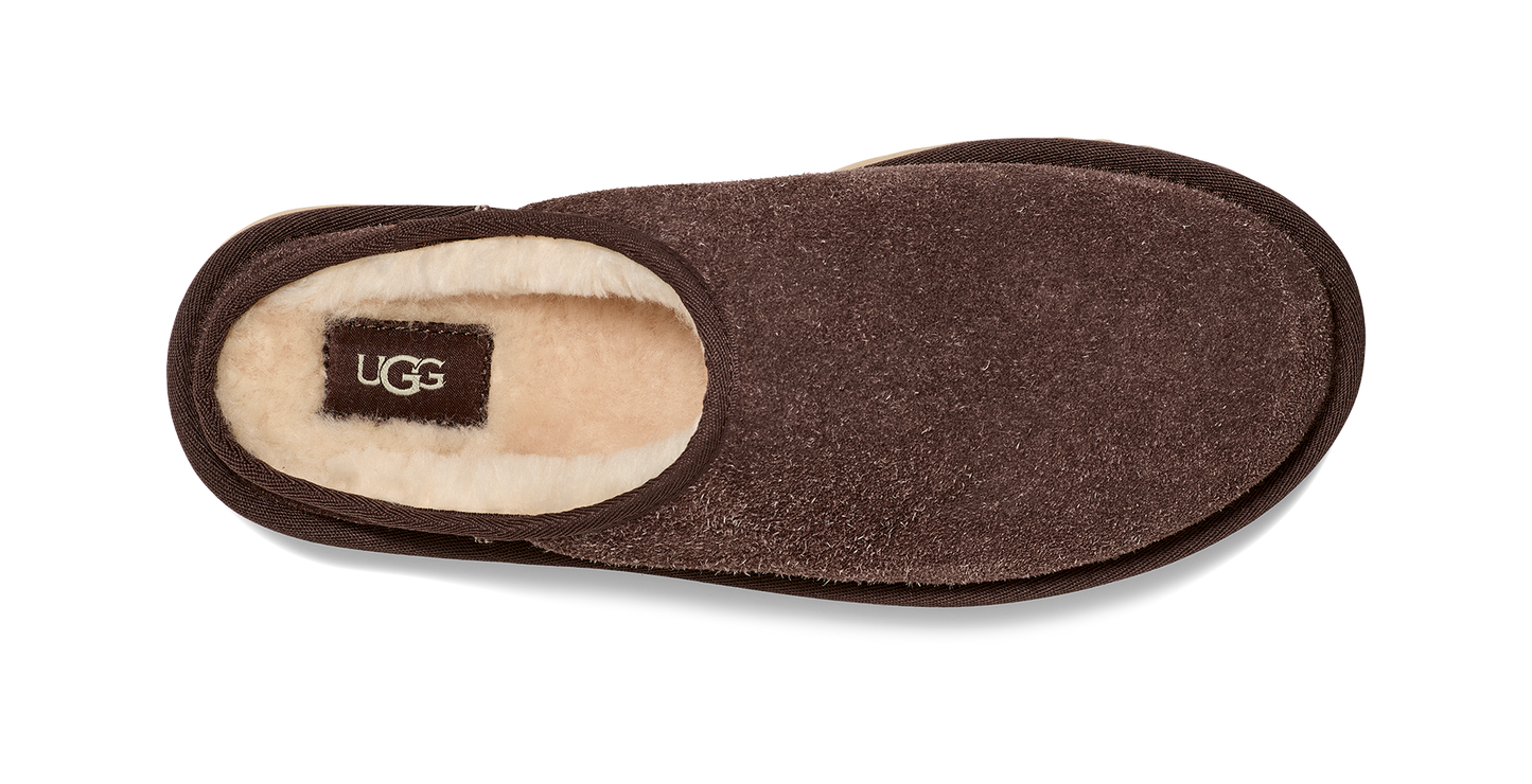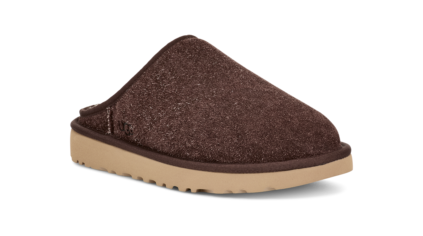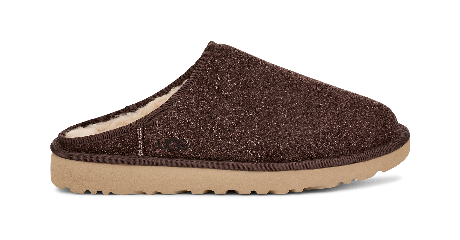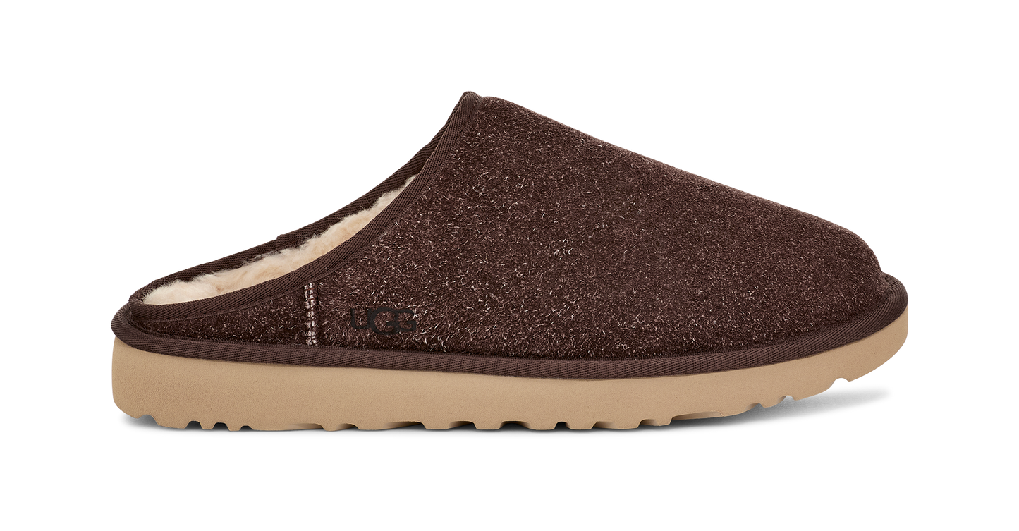 Bringing depth and dimension to your favorite slip-on. UGG have designed the Classic Slip-On Shaggy Suede slipper with a textured suede face that looks as cozy as it feels. Peek inside and you'll find our soft UGGplush™ wool-blend lining and a luxurious sheepskin insole.