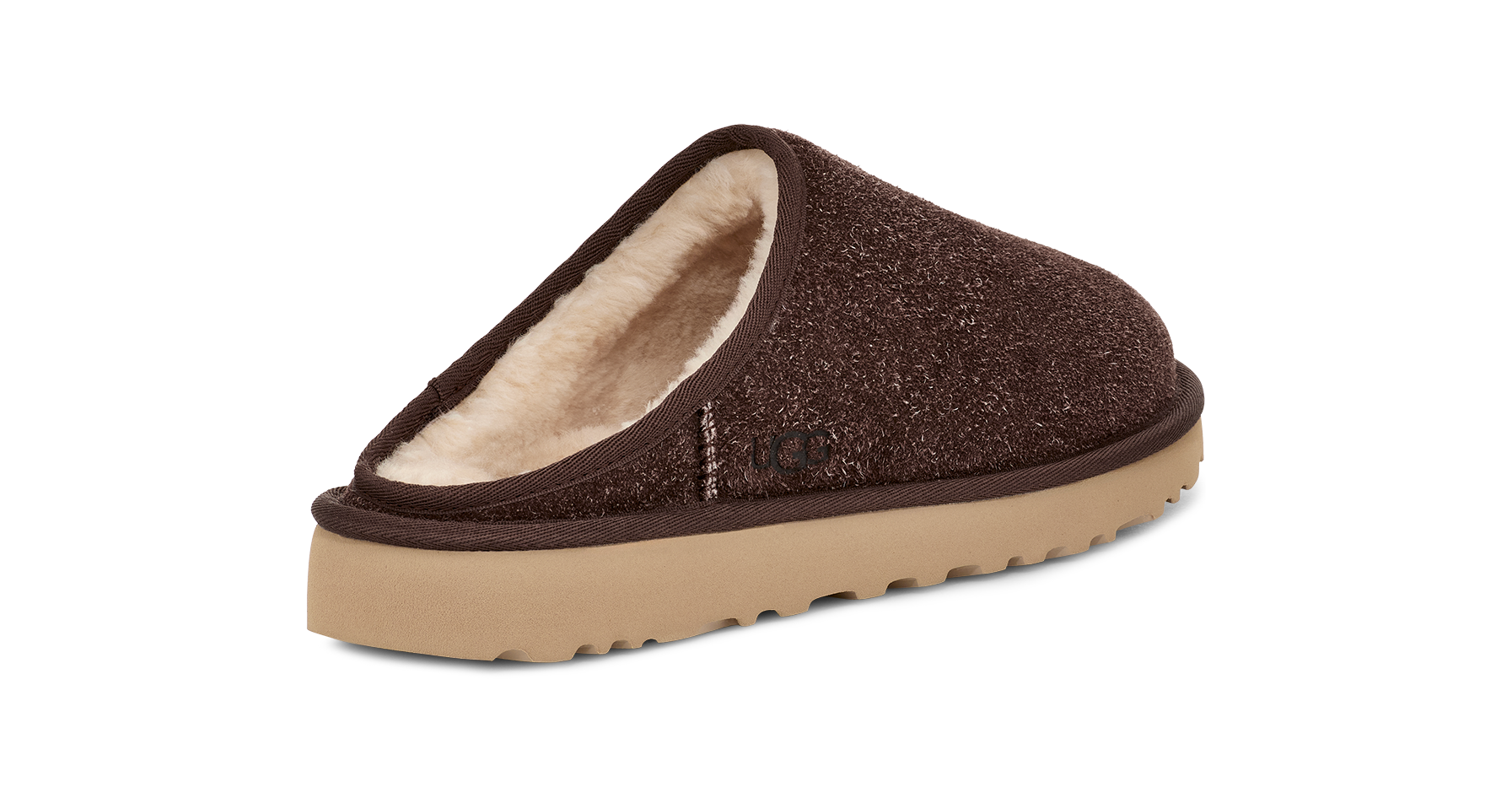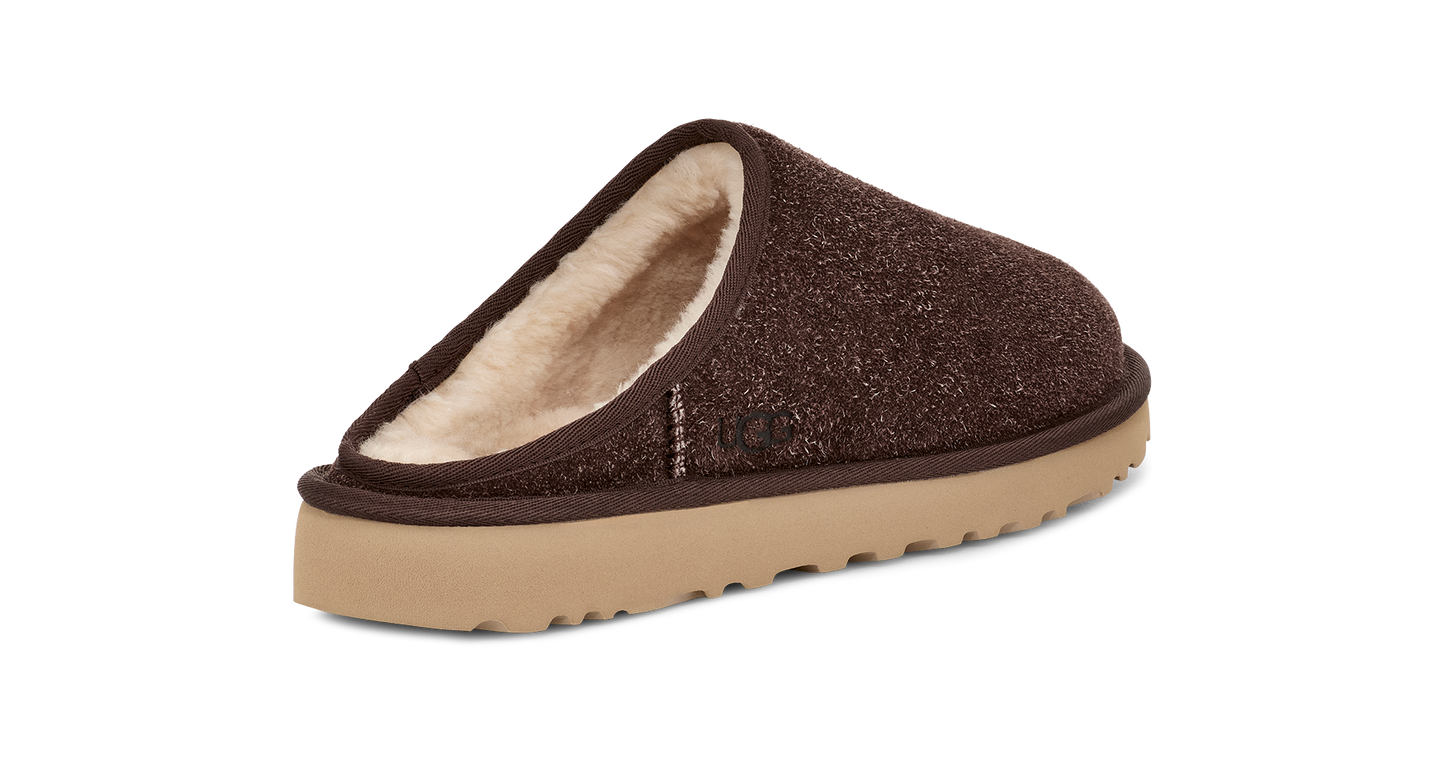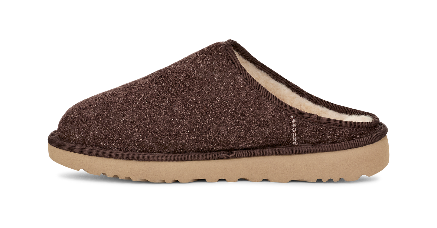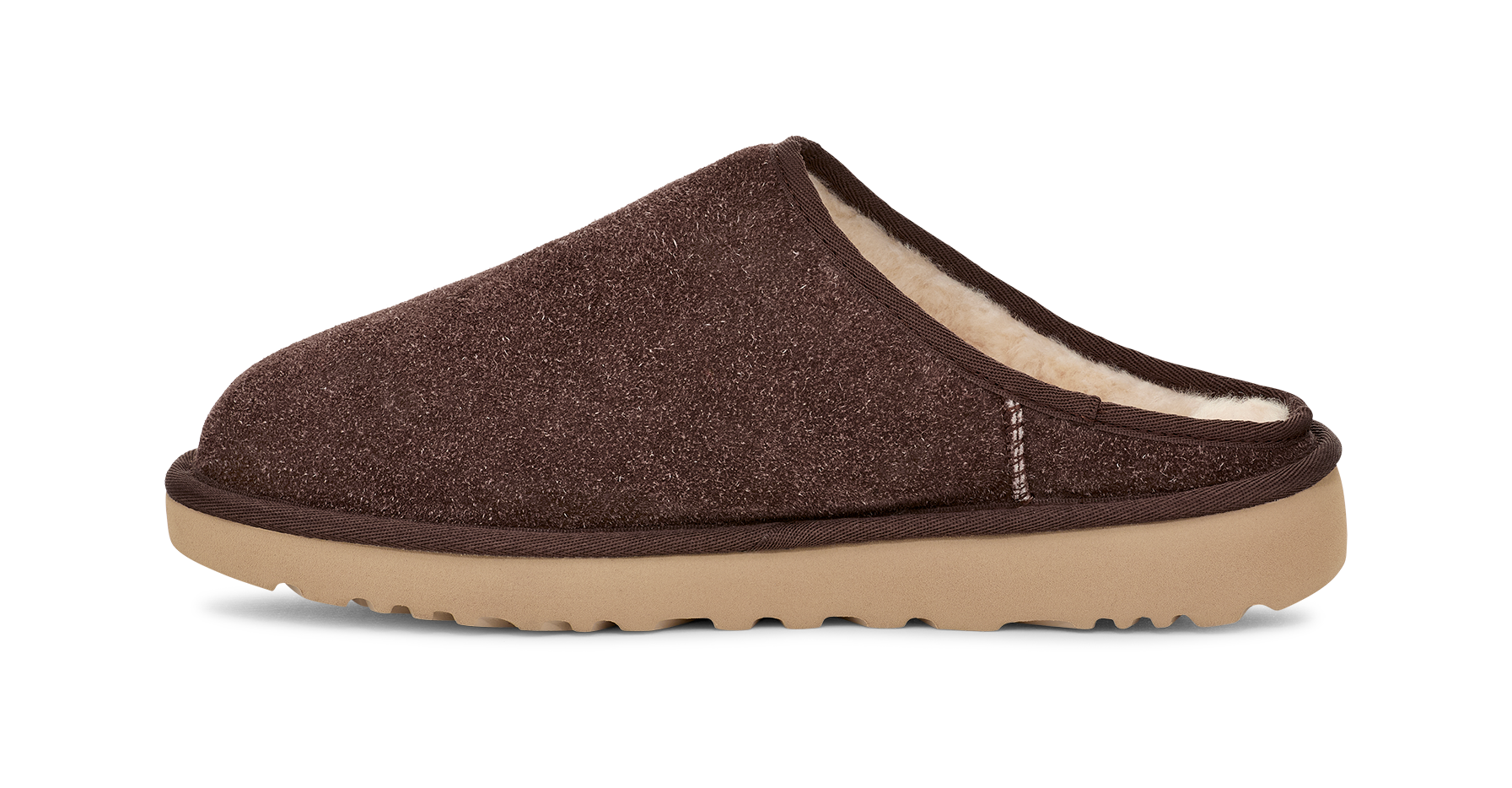 Bringing depth and dimension to your favorite slip-on. UGG have designed the Classic Slip-On Shaggy Suede slipper with a textured suede face that looks as cozy as it feels. Peek inside and you'll find our soft UGGplush™ wool-blend lining and a luxurious sheepskin insole.