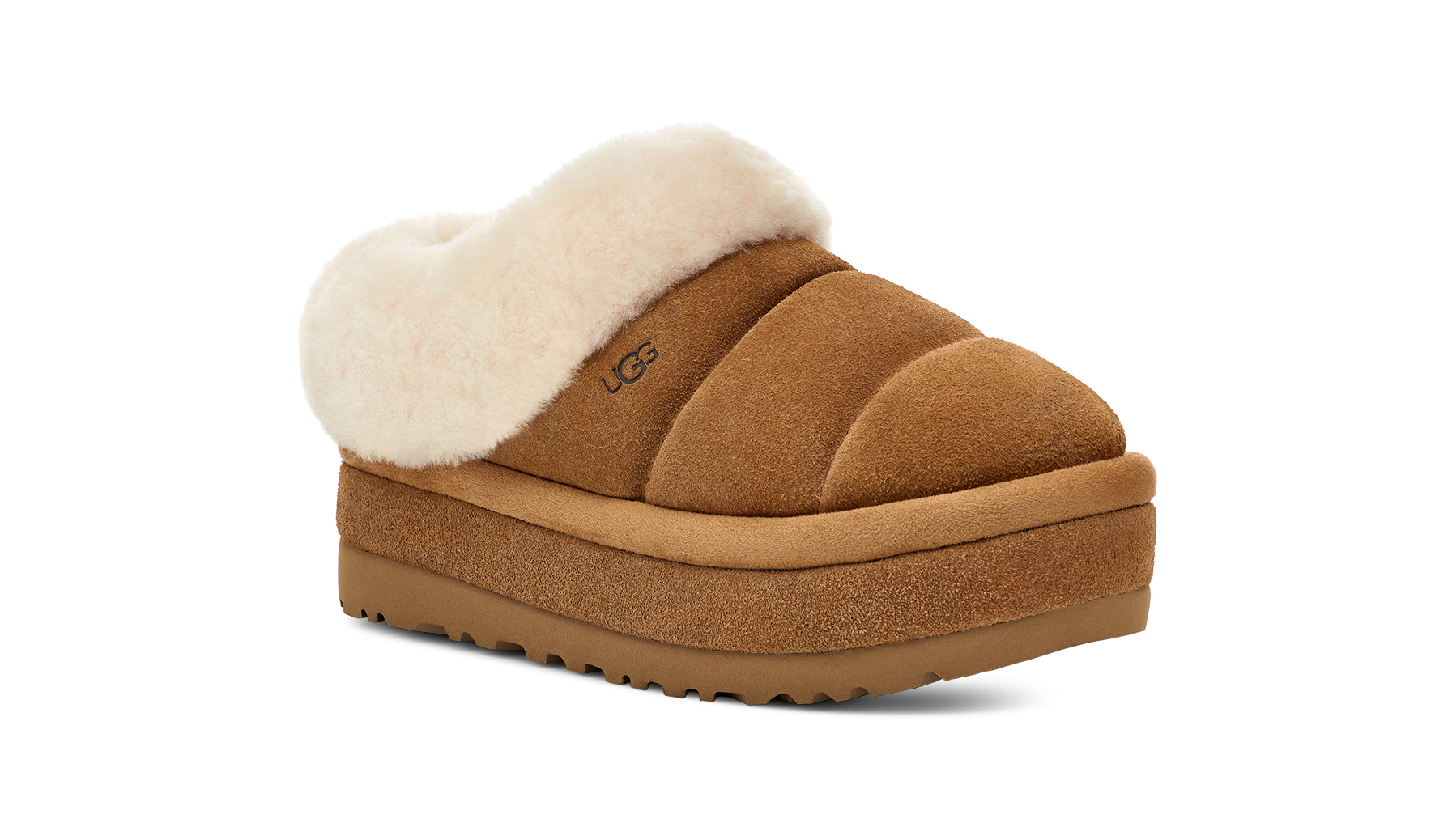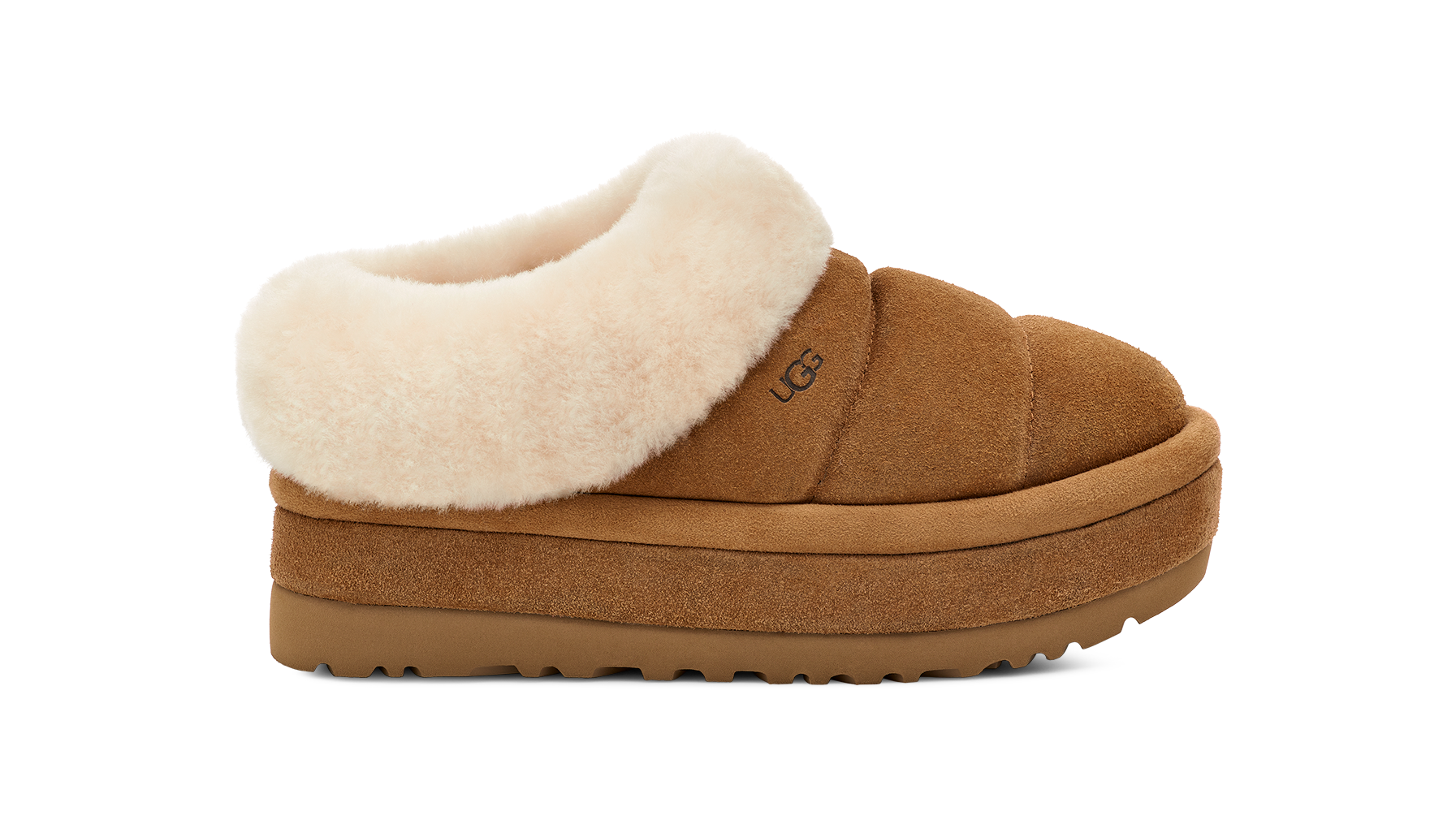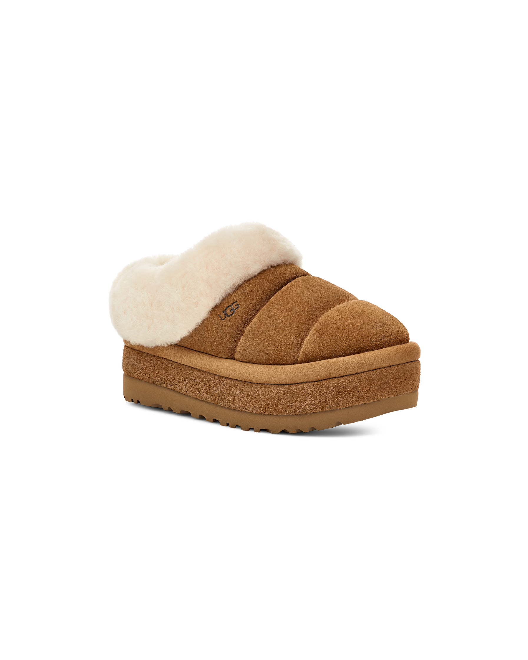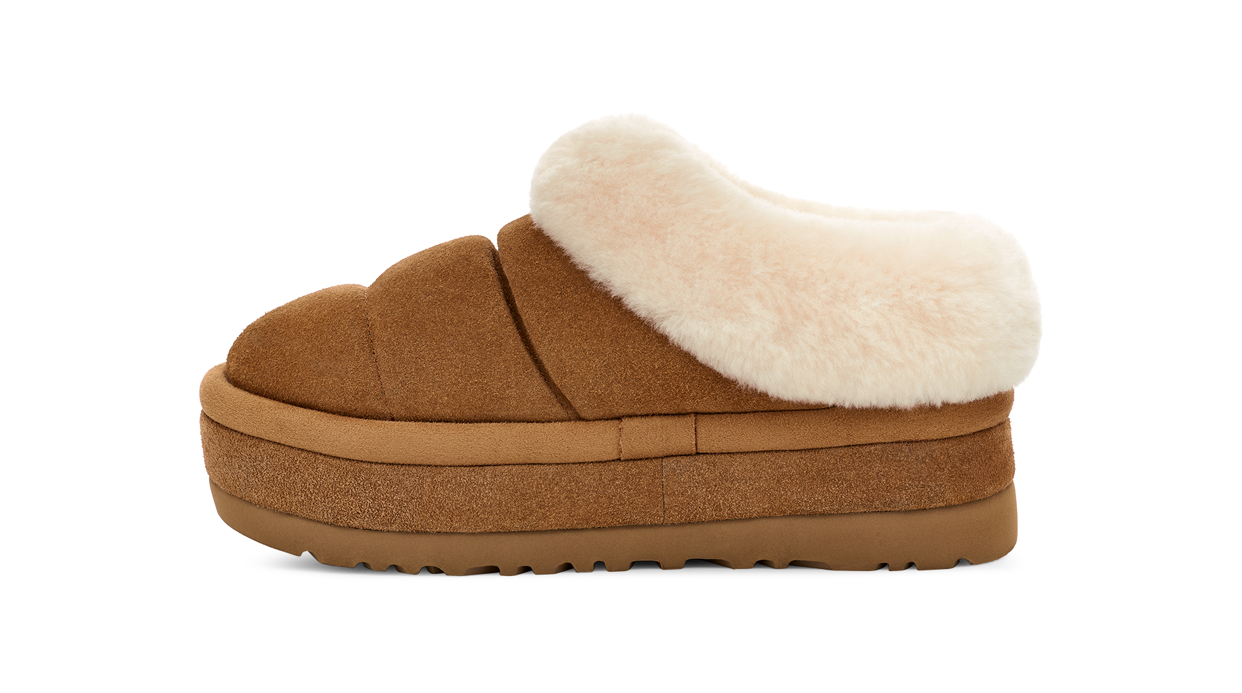 The Tazzlita takes the coziness of the iconic Tasman to the next level. The soft UGGPlush™ upcycled wool interior spills out into a 17mm Tablegrade collar over the luxe suede upper. Boasting a heightened platform for more of a fashion silhouette, this slipper feels as at home at the grocery store as it does watching movies on the couch.