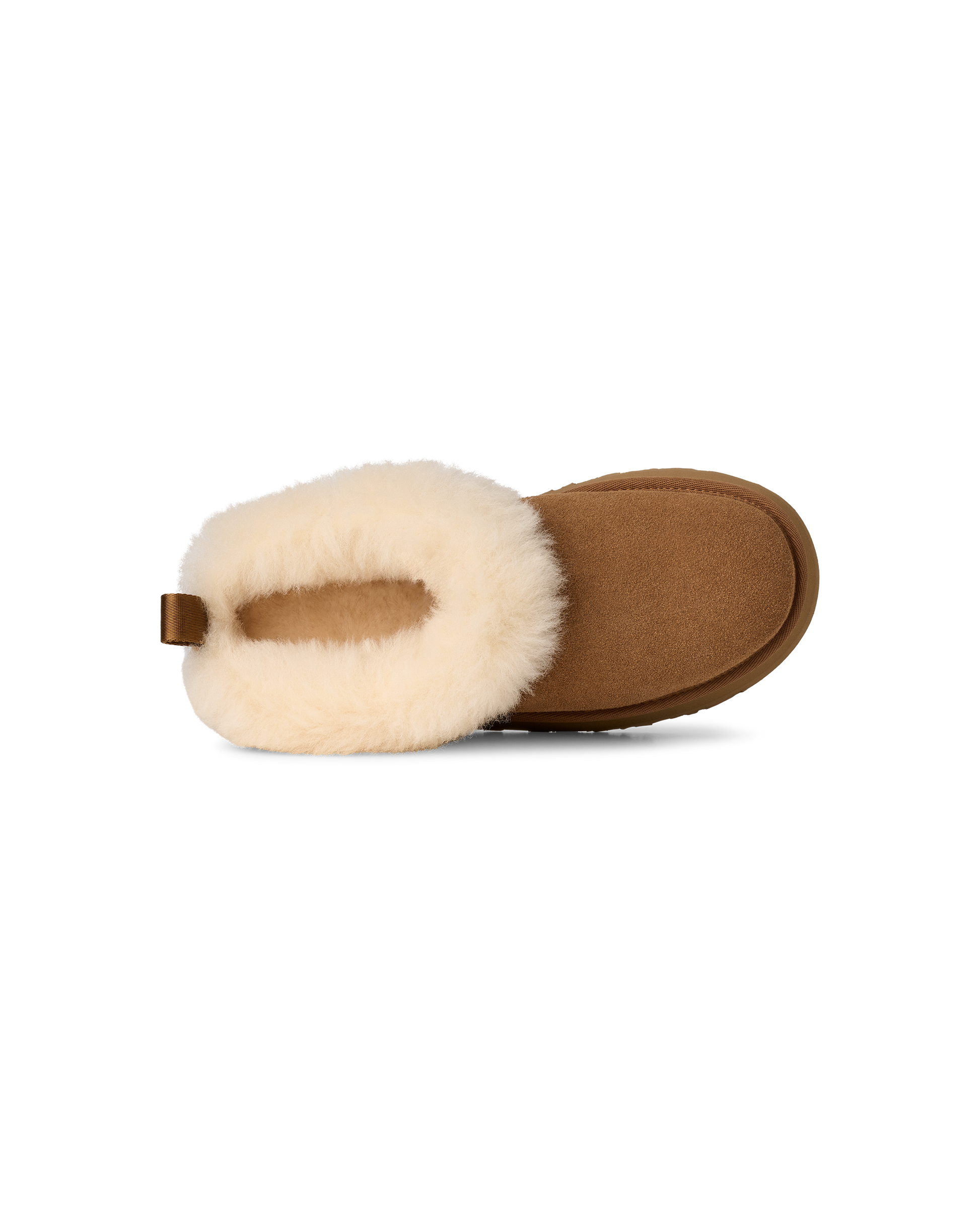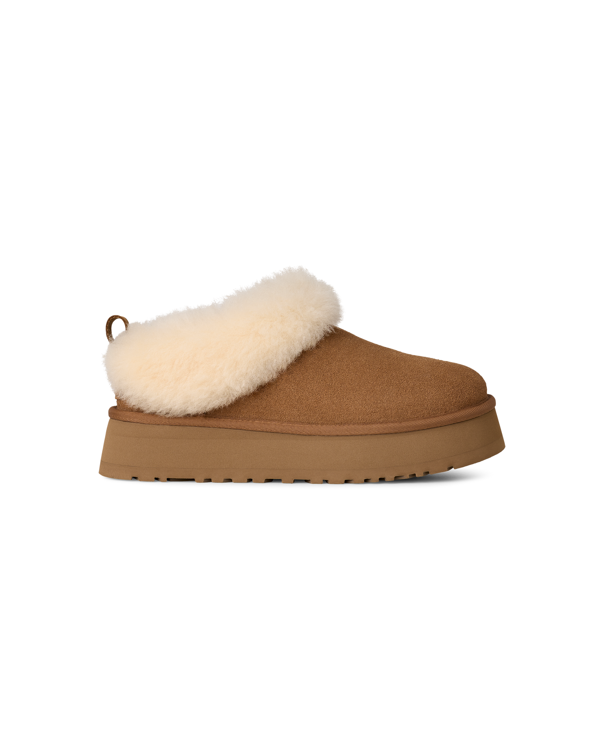 Love the Tazz but want even more UGG® coziness? Our Tazzelle is the one for you. This ultra-plush indoor-outdoor slipper features genuine suede and a lightweight 1.75' platform made from springy sugarcane EVA. Sheepskin lines the interior and continues onto the lush fixed cuff, so you can wear these with socks, or without.