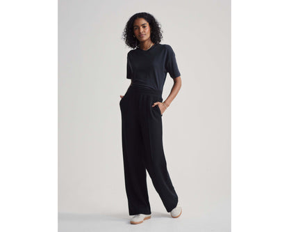 Experience unmatched comfort and style in these DoubleSoft® pants. Featuring a high-rise waist, wide-leg silhouette, elasticated waist with internal drawcord, and elegant pink tuck detailing, they're a versatile wardrobe essential.