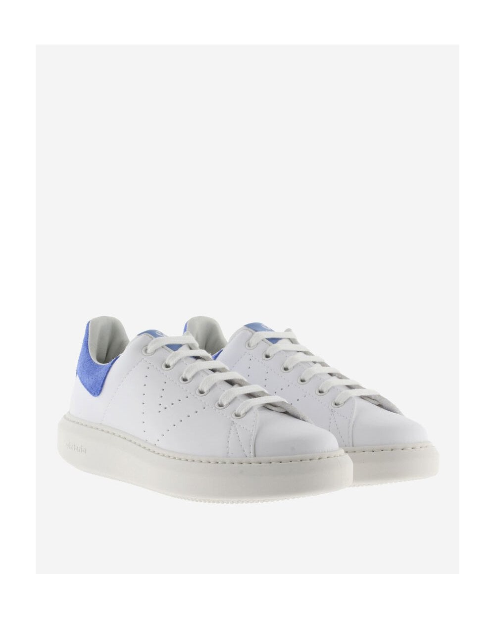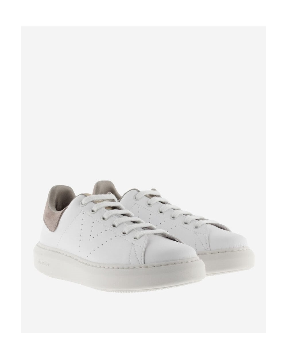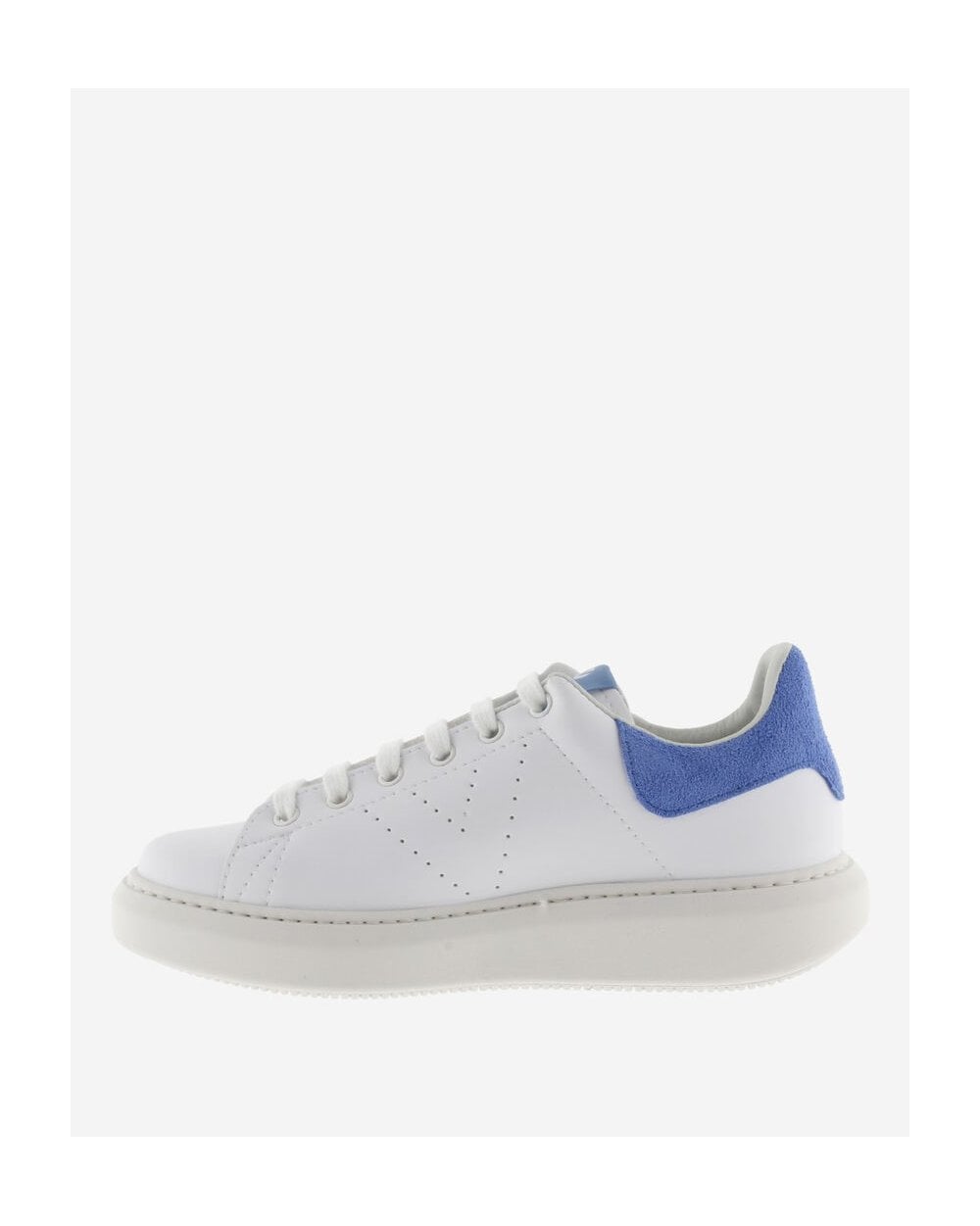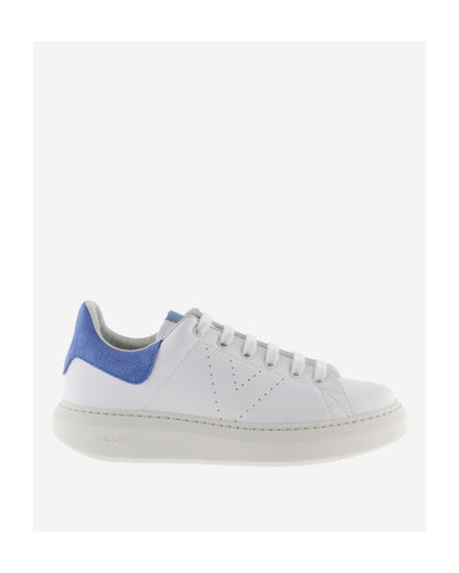 Victoria's Milan Sneaker with a chunky curved sole. Made in Spain from white faux leather with split leather back and perforated Victoria side logo.