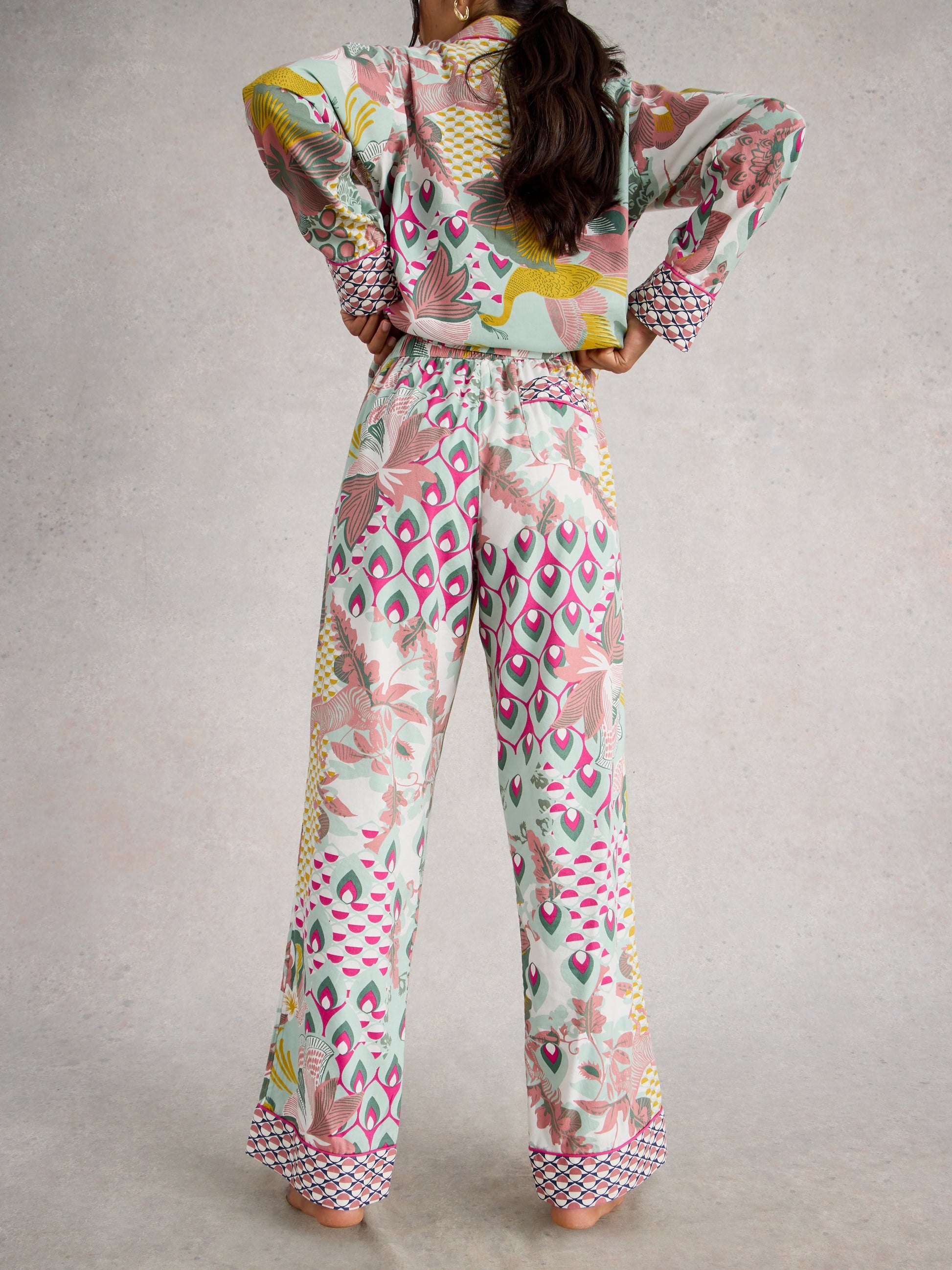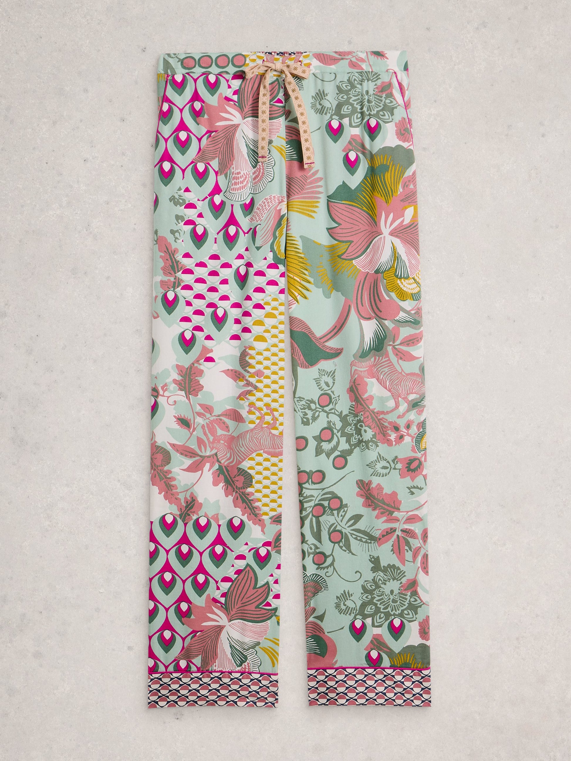 Printed pyjama trousers with contrast pattern cuffs, signature embroidery and a super soft finish. They’ve got pockets too. For hiding midnight snacks and so forth.