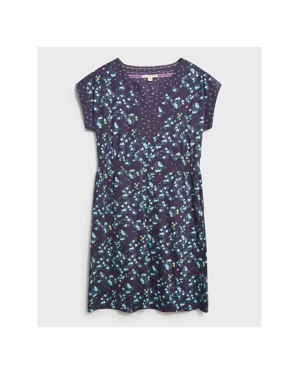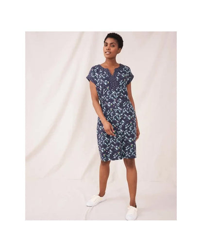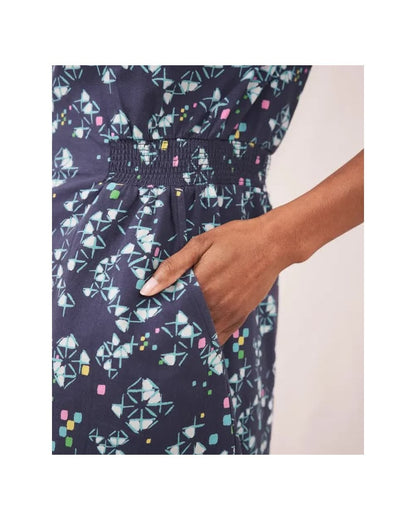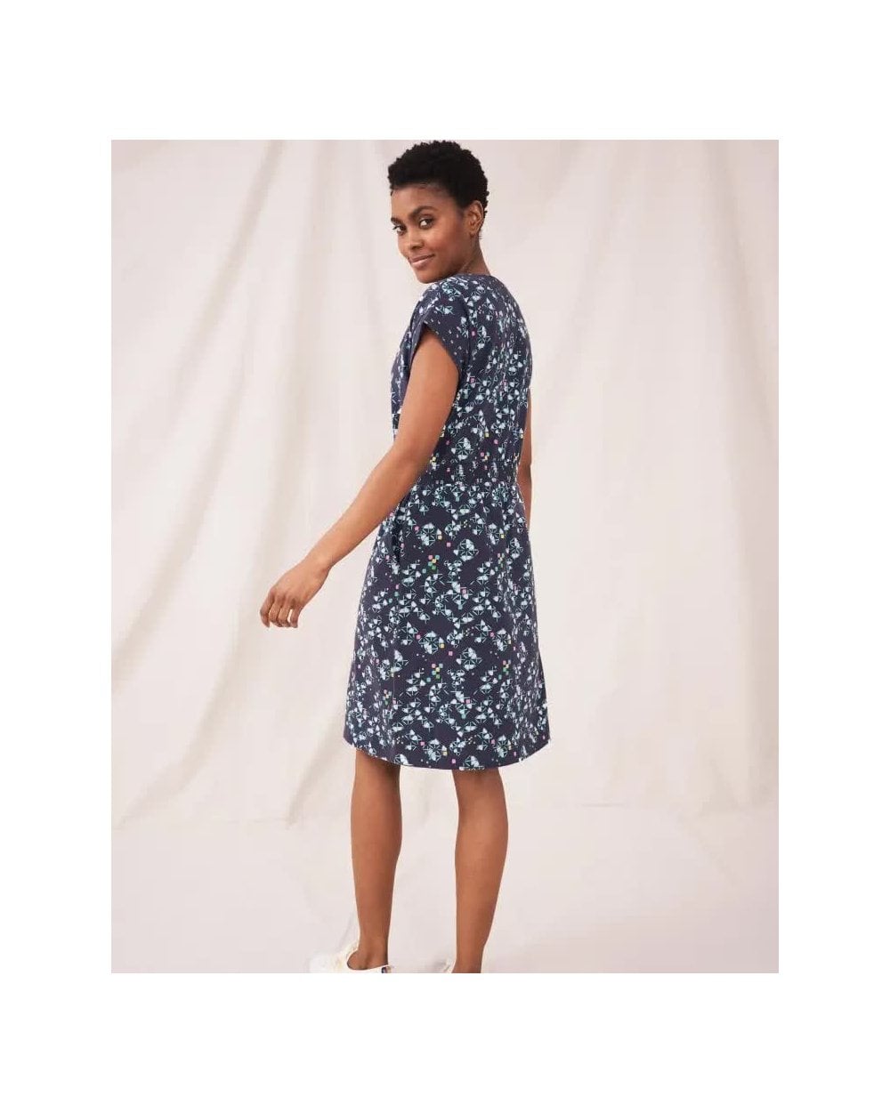 A flattering versatile dress featuring a pretty all over print, perfect for garden parties and lunch with friends. Pair with bright white trainers and a denim jacket for an effortless look. This soft fairtrade cotton dress features a nipped-in elasticated waistband and pockets for added style.