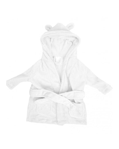 Give your precious little man somewhere warm to snuggle after a bath with this super-soft White Baby's 1st Dressing Gown. This skin-kind plush fabric gown features adorable little ears on the hood and a hanging loop. The non-detachable fastener tie makes the robe safe for use from birth. Complete with a branded gift box.