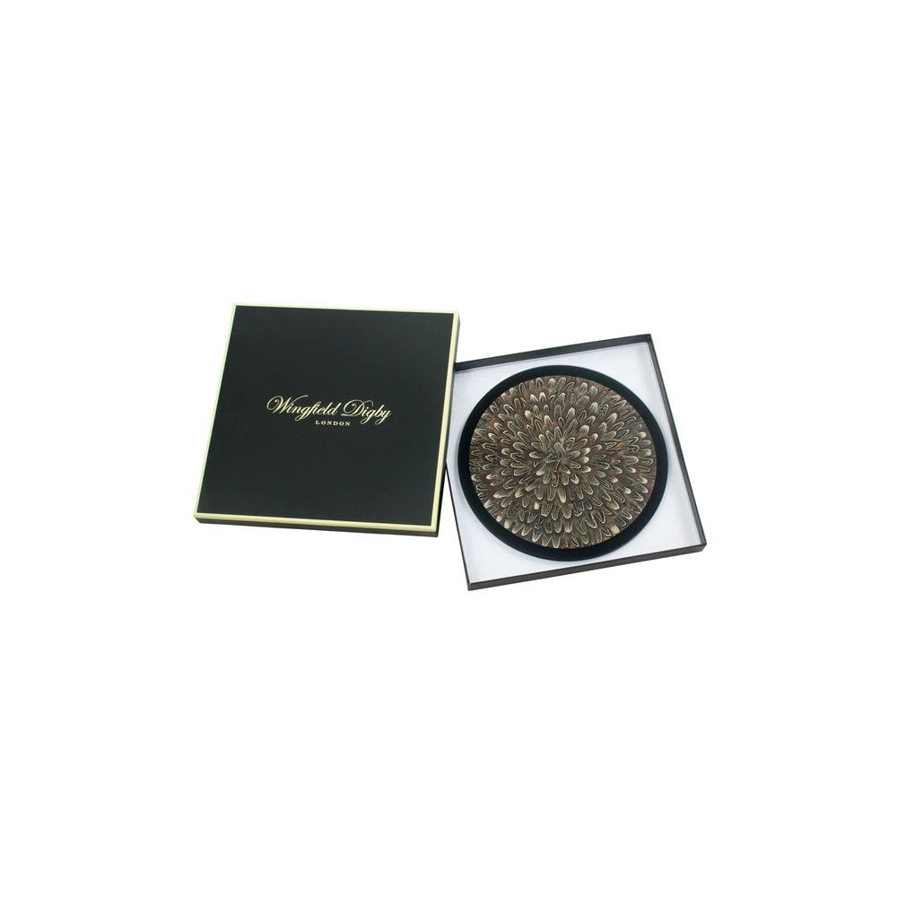 Adorn your dining table with these striking luxury placements or use as a statement centrepiece. Made from Real Cock pheasant feathers set inside reinforced heat resistant glass, and backed in baize.